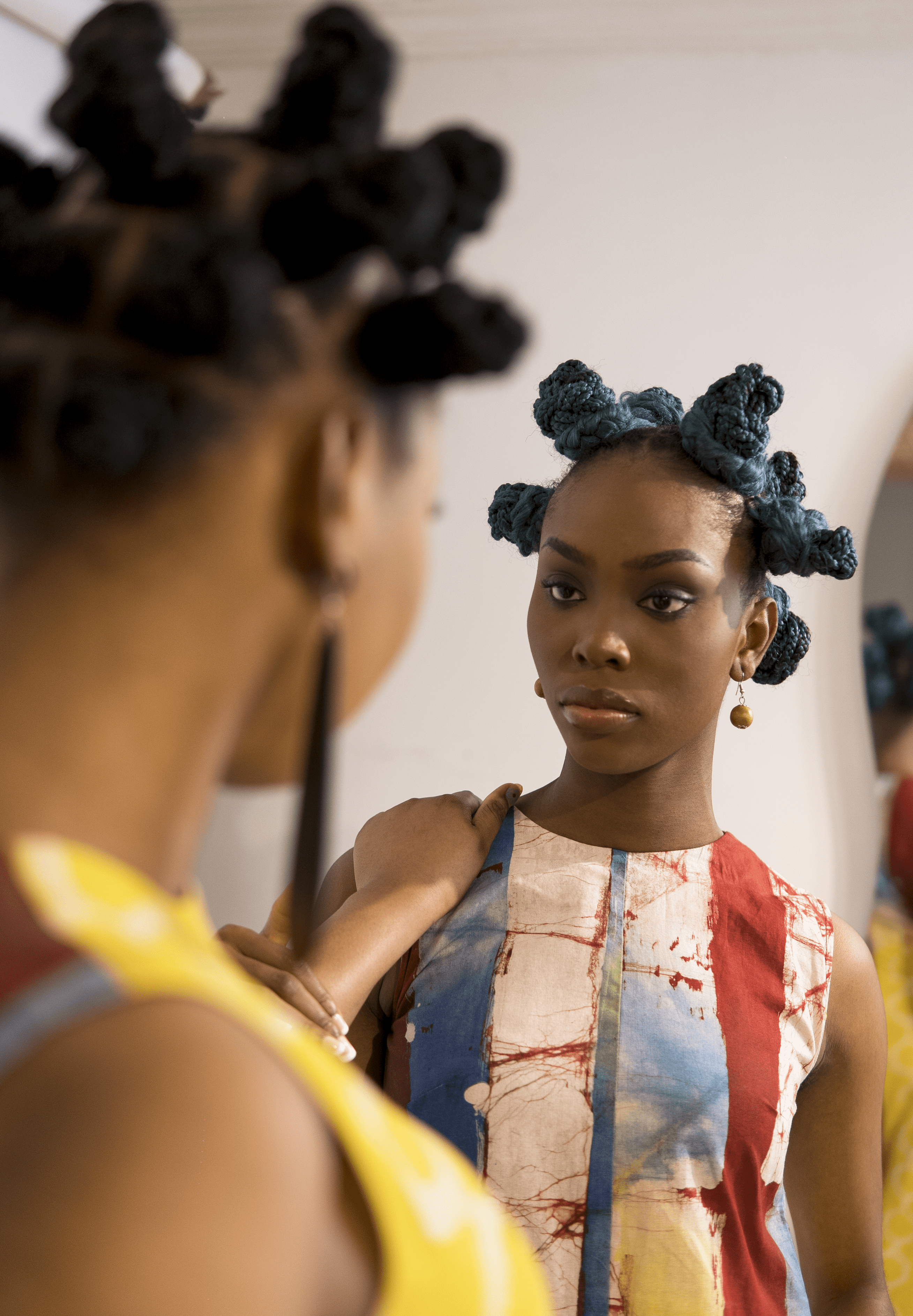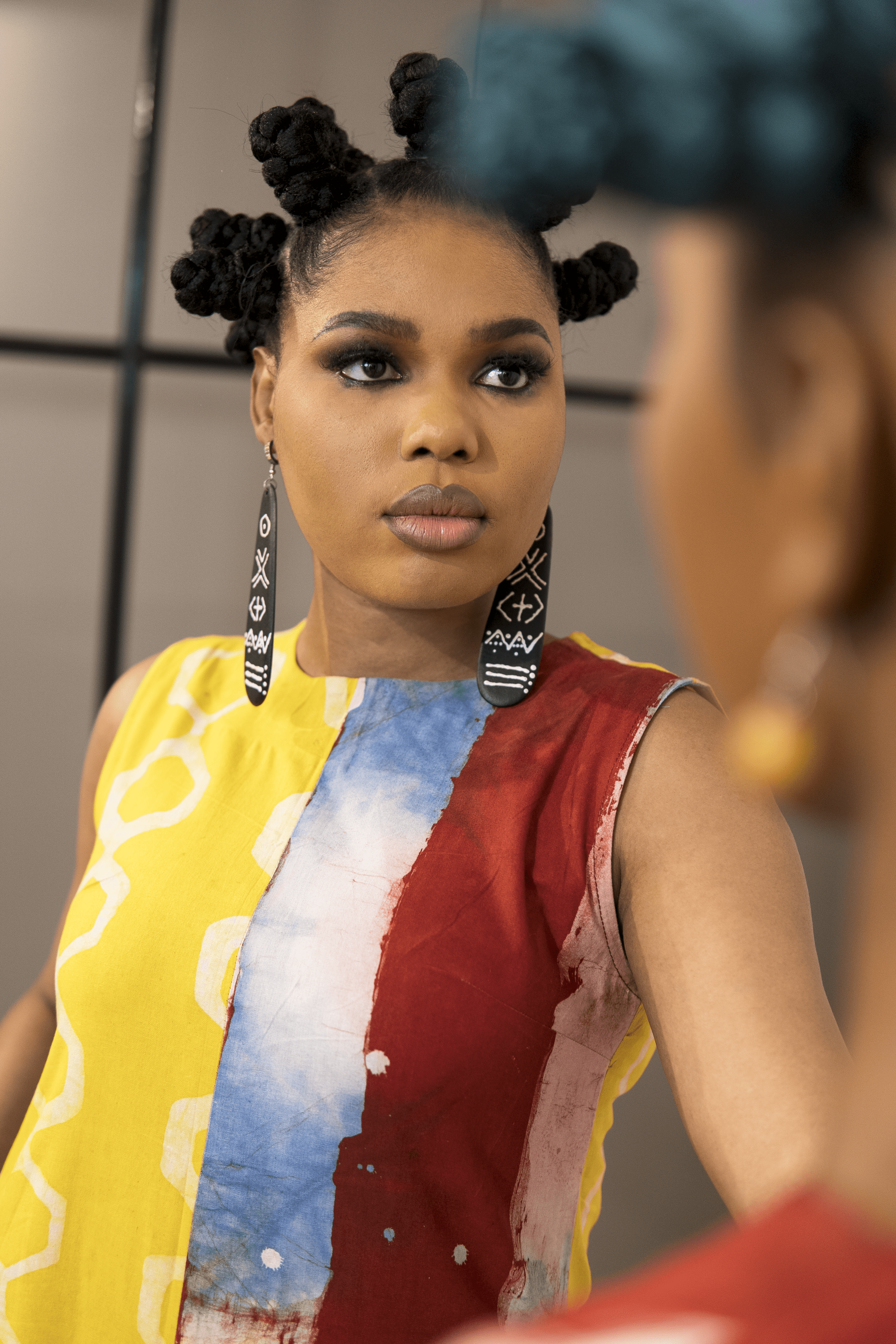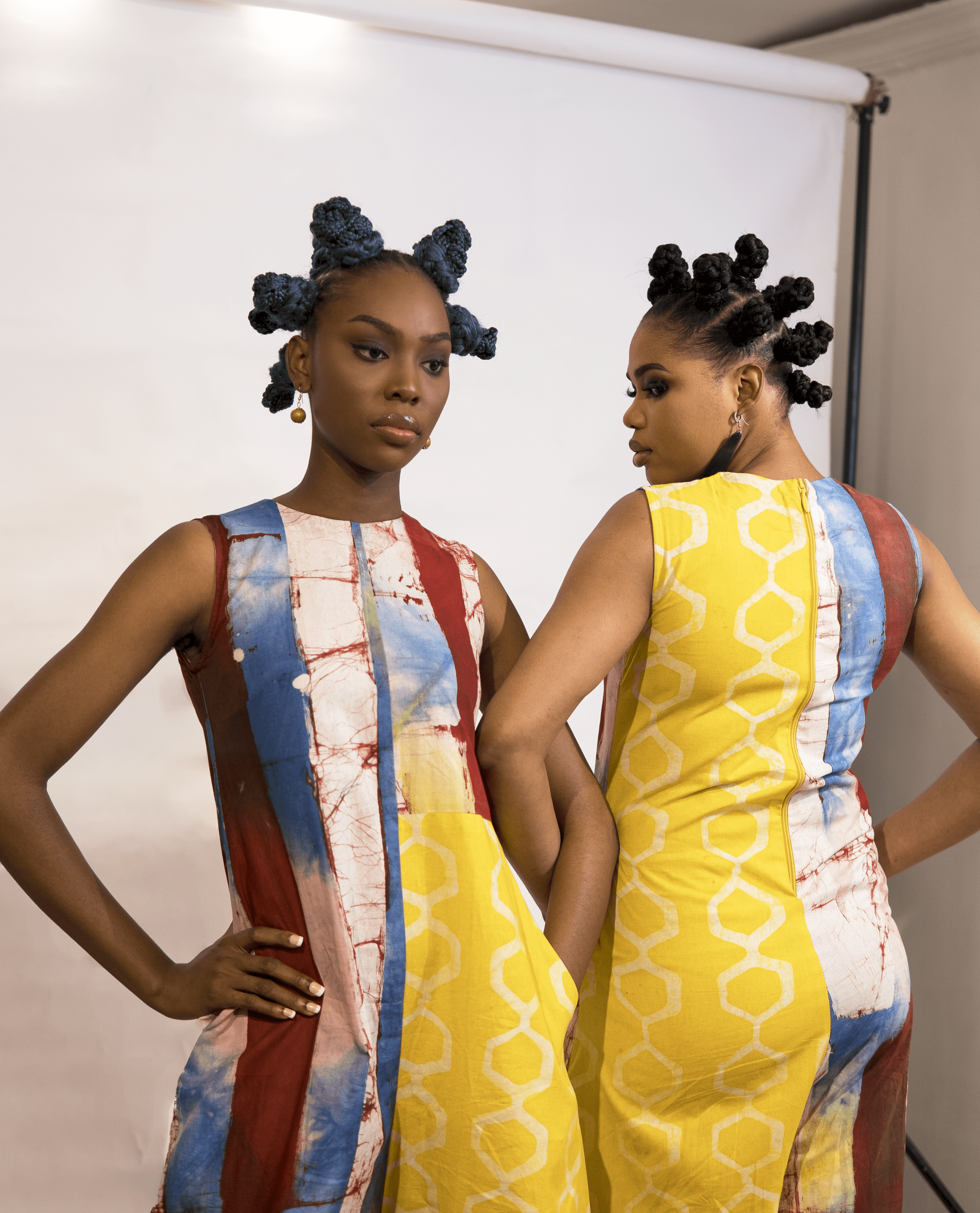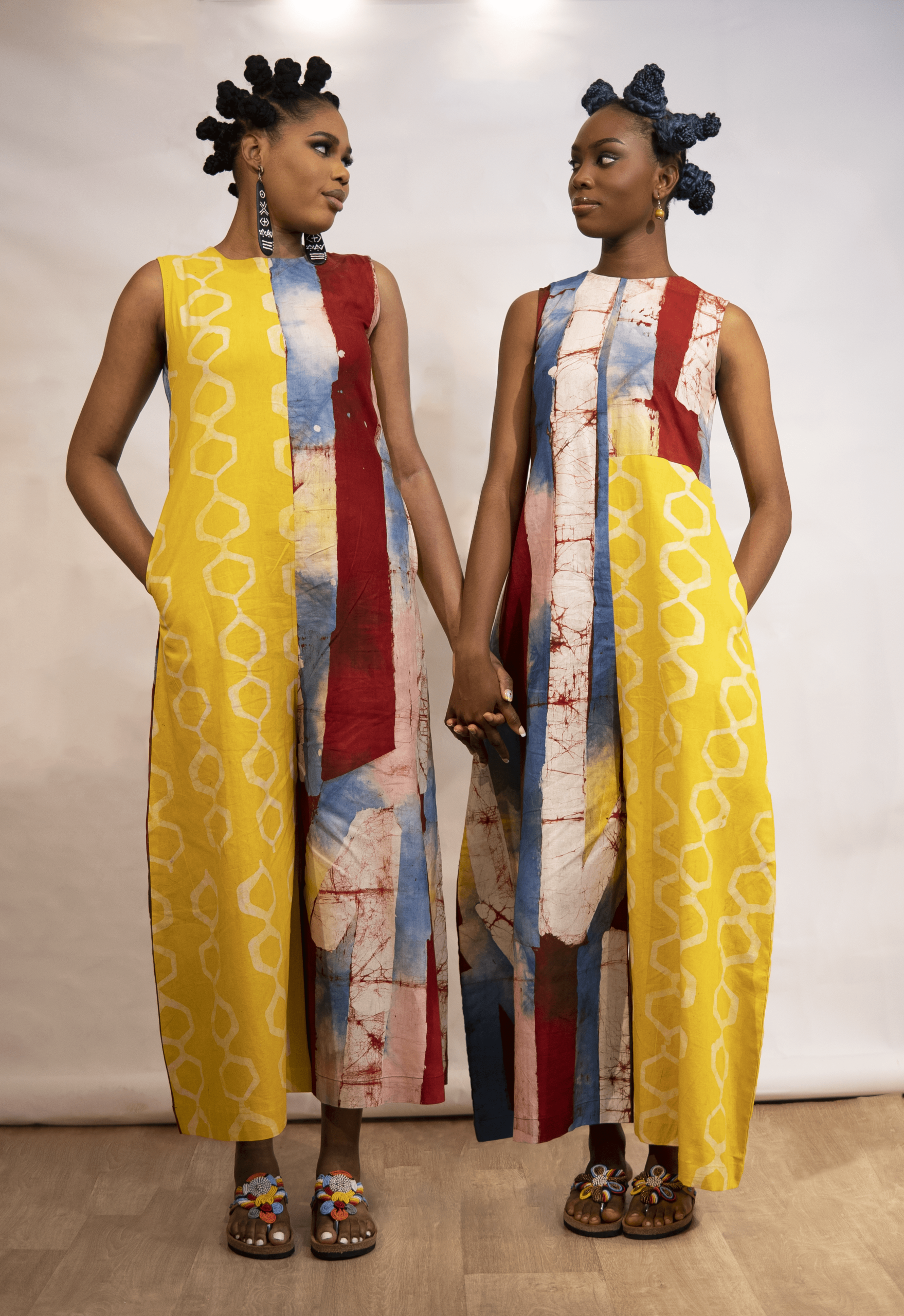 The VA-ICON Jumpsuit is a bold Adire masterpiece that combines two distinct fabrics in a striking half-and-half design. Featuring a sleeveless high-neck cut, wide-leg fit, and deep side pockets, it delivers effortless style, comfort, and a true statement look.