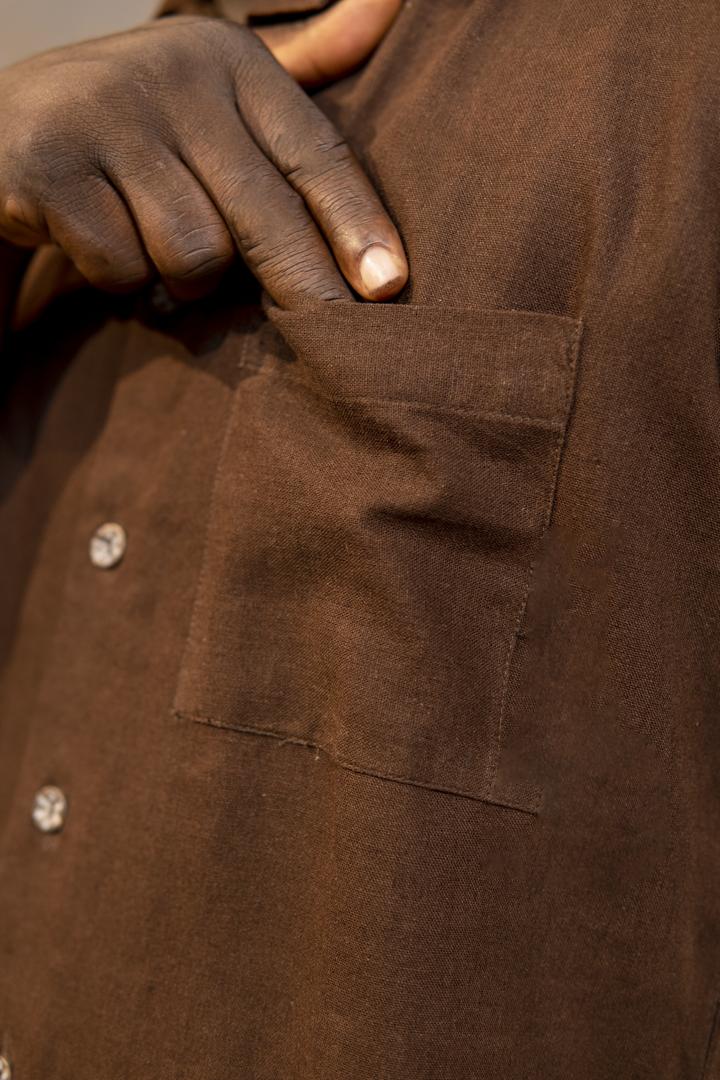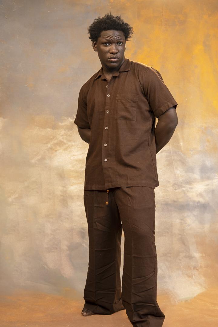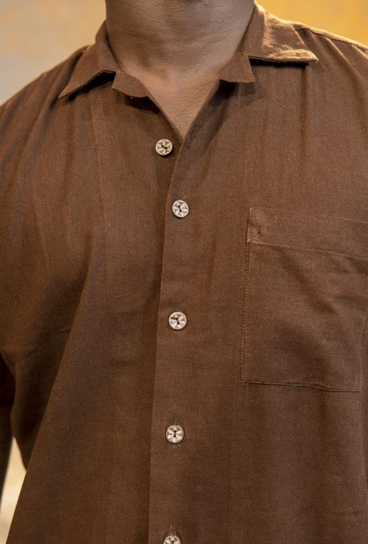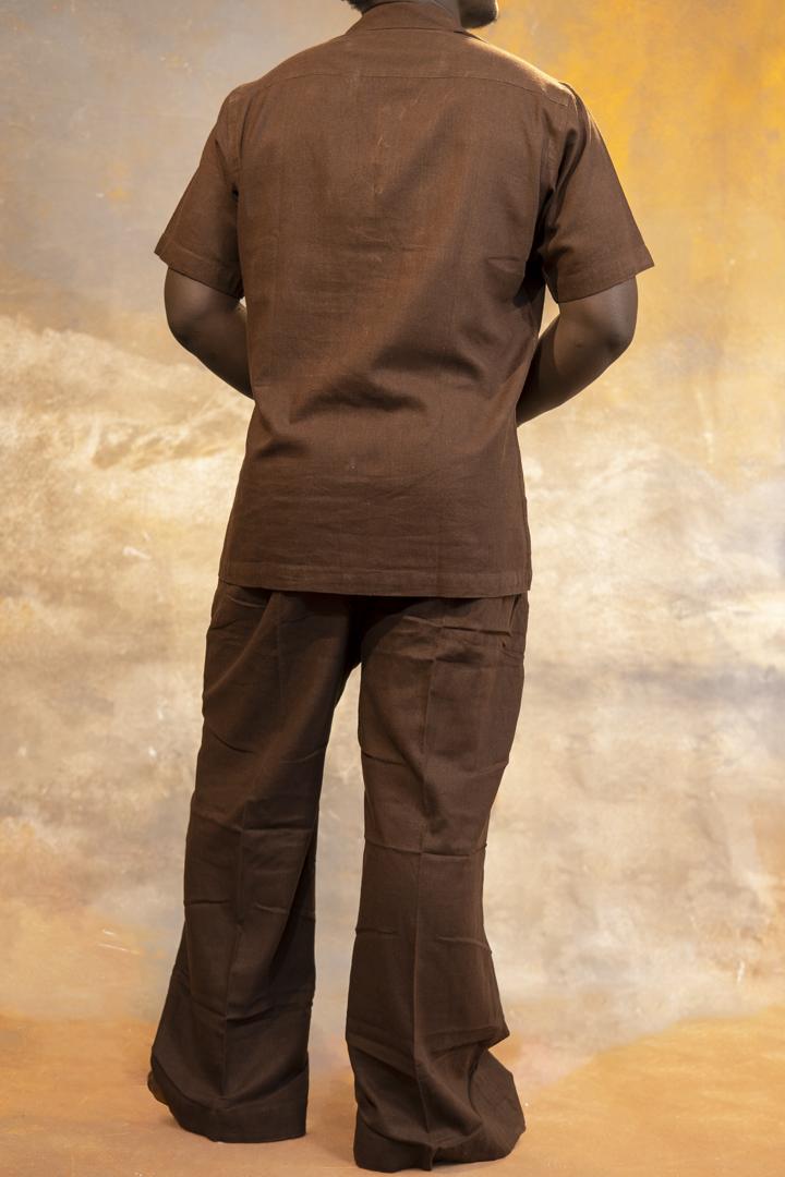 The VA-KENE Set is a stylish two-piece made from premium linen in a rich coffee-brown shade. It features a relaxed button-down shirt paired with free-flowing pants designed with pockets and a comfortable waistband for easy wear.